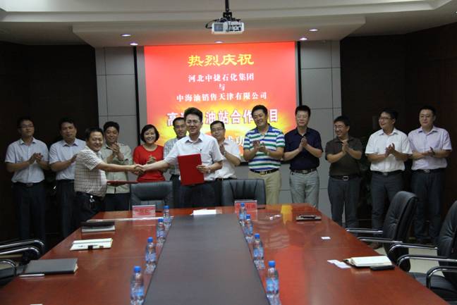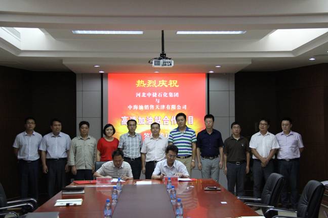 8月29日下午,在新啟元科研樓三樓會議室,河北中捷石化集團與中海油銷售天津公司舉行高層洽談會暨沿海高速服務(wù)區(qū)加油站合作項目簽字儀式。會議由中捷石化集團監(jiān)事會主席伊國東主持,中捷石化集團常務(wù)副總經(jīng)理劉國新、中海油銷售天津公司總經(jīng)理馬國東出席并作講話。華辰石油公司總經(jīng)理馬強與中海油銷售天津公司副總經(jīng)理孫昊分別代表雙方在合作協(xié)議上簽字。