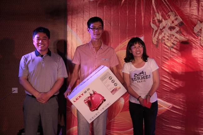 公司領(lǐng)導(dǎo)為幸運(yùn)抽取一等獎(jiǎng)的伙伴頒獎(jiǎng)