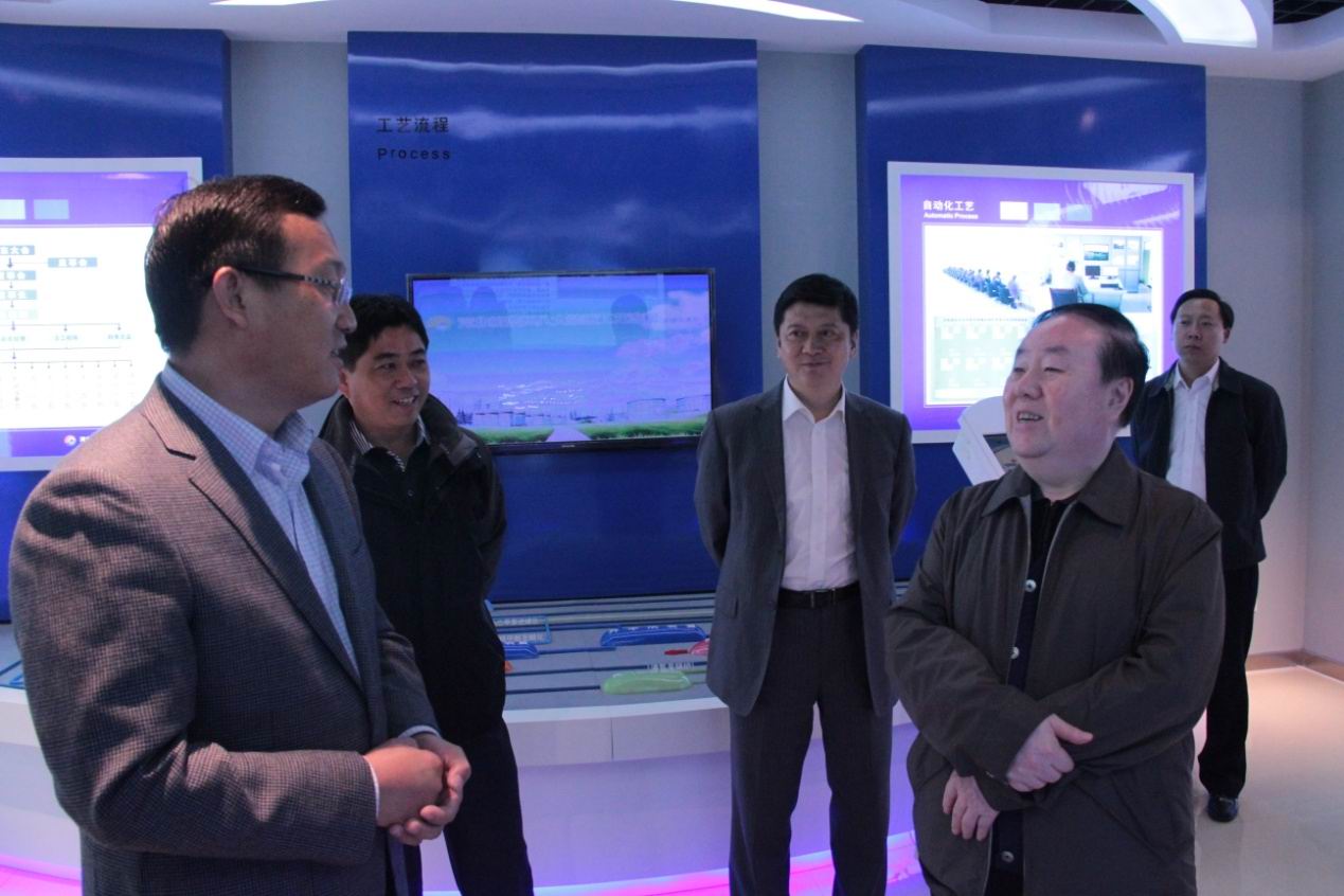 趙主席一行首先參觀了科研樓展廳,解說員向來訪領(lǐng)導(dǎo)著重介紹了公司現(xiàn)狀和公司理念等內(nèi)容,在公司裝置沙盤前,集團于總就公司規(guī)模、年產(chǎn)值、未來規(guī)劃等內(nèi)容向來訪領(lǐng)導(dǎo)作簡單介紹。