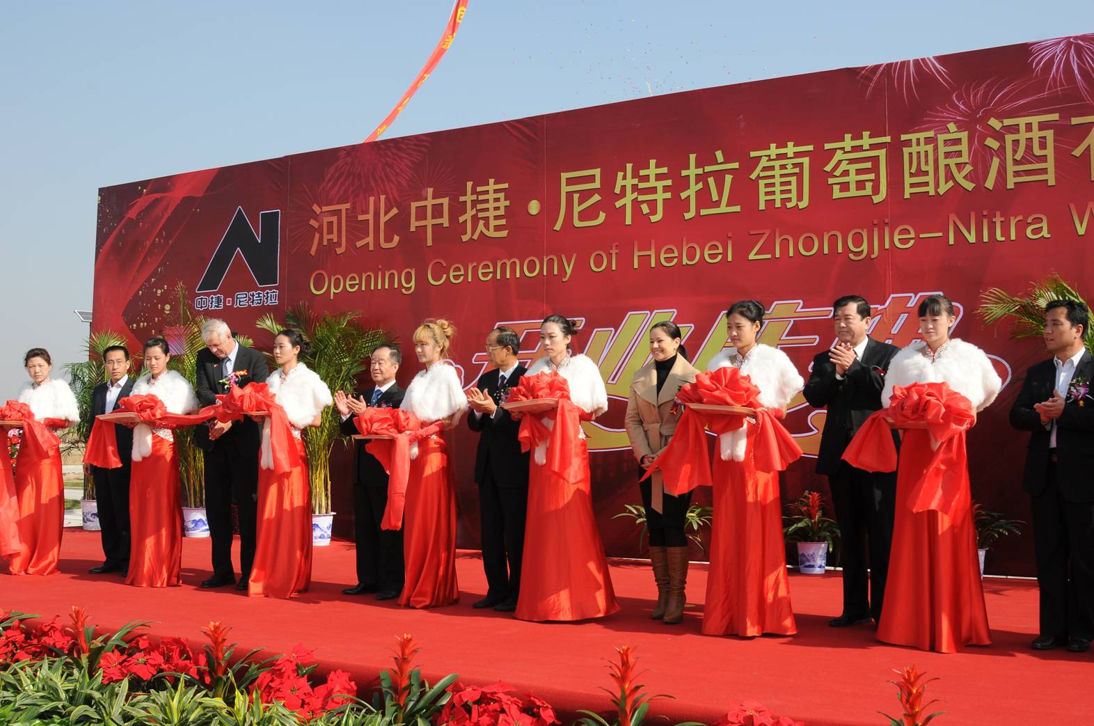 慶典活動中,尼特拉酒莊總經(jīng)理劉月榮、斯洛伐克聯(lián)合工業(yè)公司總裁愛德華?舍波博士、中捷石化集團董事長王振華先生、中捷產(chǎn)業(yè)園區(qū)管委會主任于連治先生、斯洛伐克使館領事那佳?霍拉瓦馳考娃女士依次為酒莊開業(yè)致詞。