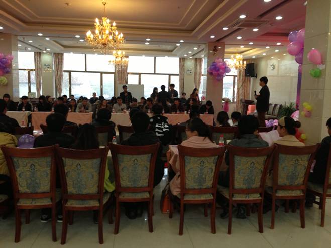 聯(lián)誼會(huì)現(xiàn)場(chǎng)布置的溫馨而浪漫,在簽到處設(shè)立了活動(dòng)參加人員詳細(xì)信息介紹的展牌,使參加人員在簽到時(shí)就開(kāi)始相互了解。9:30活動(dòng)準(zhǔn)時(shí)開(kāi)始,60名單身男女逐一做了自我介紹;搶凳子、英雄救美的游戲調(diào)動(dòng)了現(xiàn)場(chǎng)氣氛,激發(fā)了大家積極參與的熱情,也讓單身男女在游戲中尋找心儀的對(duì)象,在歡聲笑語(yǔ)中尋找著屬于自己的幸福。通過(guò)“緣來(lái)一分鐘”環(huán)節(jié),和自己心儀的對(duì)象進(jìn)行近距離接觸。為了讓單身男女有更好的交流和融合,此次活動(dòng)還加入了手工制作,讓男女嘉賓以桌為小組,利用提前準(zhǔn)備好的材料在整個(gè)交友活動(dòng)結(jié)束之前完成一個(gè)以“愛(ài)”為主題的作品,然后進(jìn)行詮釋。最后“真情告白”,向心儀的對(duì)象真誠(chéng)表白。通過(guò)此次活動(dòng)的牽線搭橋,共有三對(duì)單身男女牽手成功。