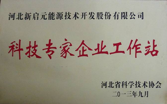 2013年4月,新啟元公司技術(shù)工程部根據(jù)河北省科學(xué)技術(shù)協(xié)會印發(fā)的《關(guān)于2013年度院士專家服務(wù)中心、科技專家企業(yè)工作站申報(bào)工作的通知》組織材料申報(bào)科技專家企業(yè)工作站,于7月上報(bào)到滄州市科協(xié)學(xué)會部,初審?fù)ㄟ^后,獲得科技專家企業(yè)工作站的榮譽(yù)稱號。