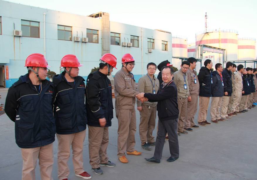 除夕下午五點,中捷石化集團董事長王振華帶領(lǐng)集團領(lǐng)導(dǎo)班子來到新啟元公司,向節(jié)日里仍然堅守在工作崗位上的伙伴們送去新年祝福。