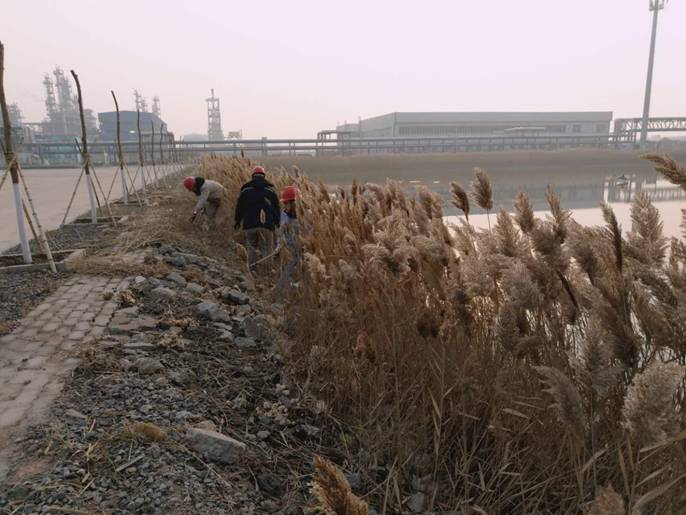 細(xì)問(wèn)之下了解到,原來(lái)是運(yùn)行六部的尾氣硫酸銨二班、水廠二班、污水二班的員工們看到景觀湖周?chē)煽莸奶J葦影響了公司整體環(huán)境的美觀,同時(shí)面臨氣候干燥的冬季容易成為火災(zāi)隱患。為此,班長(zhǎng)們主動(dòng)溝通交流,利用休班時(shí)間自動(dòng)自發(fā)的對(duì)景觀湖蘆葦進(jìn)行清理。