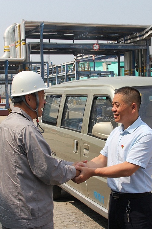 7月下旬,新啟元公司系統(tǒng)大檢修“攻堅(jiān)戰(zhàn)”正式吹響了號(hào)角,拉開(kāi)了帷幕。為鼓舞檢修一線(xiàn)干部職工士氣,7月26日上午,集團(tuán)黨支部書(shū)記、總經(jīng)理喬樹(shù)華,工會(huì)主席趙愛(ài)華、總工程師李金馬在新啟元公司總經(jīng)理崔志河,工會(huì)主席劉立新、華騰安裝公司總經(jīng)理劉世舉的陪同下深入新啟元公司檢修現(xiàn)場(chǎng),看望慰問(wèn)奮戰(zhàn)在酷暑中的干部職工,為他們送去綠茶、礦泉水、水果等慰問(wèn)品,把集團(tuán)黨政領(lǐng)導(dǎo)班子的無(wú)限關(guān)懷和真切關(guān)愛(ài)送到干部職工手中,向他們表達(dá)了敬意,表示了感謝。