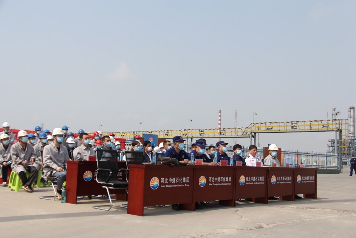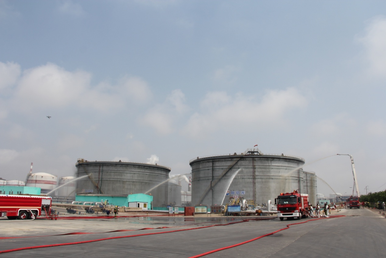 上午10:00,現(xiàn)場(chǎng)總指揮拉響警報(bào)后,演練準(zhǔn)時(shí)開(kāi)始。情景模擬儲(chǔ)罐因雷擊出現(xiàn)密封圈點(diǎn)式火災(zāi),并引發(fā)泄漏著火事故,因企業(yè)自身應(yīng)急救援力量不能及時(shí)控制火勢(shì),情況緊急擴(kuò)大響應(yīng),中捷產(chǎn)業(yè)園區(qū)啟動(dòng)應(yīng)急救援預(yù)案,調(diào)集政府消防隊(duì)、周邊企業(yè)消防隊(duì)、120救護(hù)車(chē)進(jìn)行緊急救援,各救援隊(duì)伍立即投入到救援行動(dòng)中,最終將傷員救出,火災(zāi)得到控制。通過(guò)此次演練,檢驗(yàn)了園區(qū)危險(xiǎn)化學(xué)品應(yīng)急預(yù)案的科學(xué)性和實(shí)用性,進(jìn)一步提高了企業(yè)面對(duì)突發(fā)事件的應(yīng)急處理能力和協(xié)調(diào)作戰(zhàn)能力,以及?;坊馂?zāi)事故應(yīng)急管理救援水平,進(jìn)一步提升了應(yīng)急救援體系和應(yīng)急預(yù)案的可行性、緊密性、可靠性。