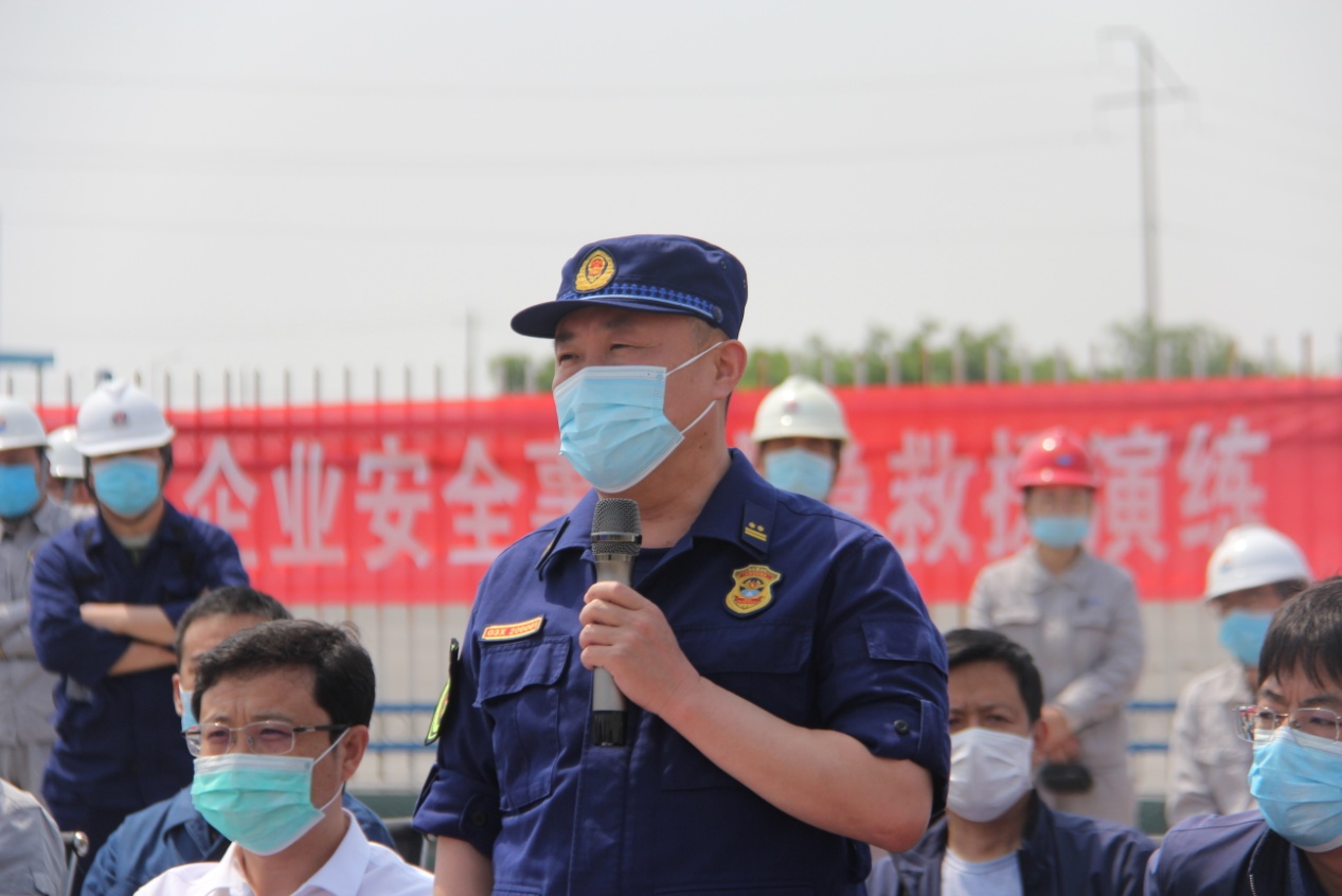 王偉支隊(duì)長(zhǎng)對(duì)此次演練進(jìn)行點(diǎn)評(píng)。他指出:此次應(yīng)急演練非常具有針對(duì)性,各參演單位精心組織、周密安排、密切配合,達(dá)到了預(yù)期效果。此次演練是深入貫徹落實(shí)習(xí)近平總書(shū)記對(duì)安全生產(chǎn)工作的重要指示精神,促進(jìn)了政府消防隊(duì)伍與企業(yè)消防隊(duì)伍之間協(xié)同作戰(zhàn)能力及水平的大幅提升。今后,我們要把功夫下在平時(shí),提升救援隊(duì)伍的精神面貌,強(qiáng)化應(yīng)急救援專(zhuān)業(yè)訓(xùn)練,針對(duì)突發(fā)事件應(yīng)急救援工作面臨的新形勢(shì)、新情況,崗位練兵和聯(lián)合實(shí)戰(zhàn)要相結(jié)合,做到磨練隊(duì)伍、總結(jié)經(jīng)驗(yàn)、提升能力,一旦發(fā)生事故,確保能夠快速響應(yīng),科學(xué)救援,將人員傷亡和財(cái)產(chǎn)損失降到最小。同時(shí)針對(duì)演練中暴露出的問(wèn)題要認(rèn)真總結(jié),加以改進(jìn),確保演練效果真正落到實(shí)處。