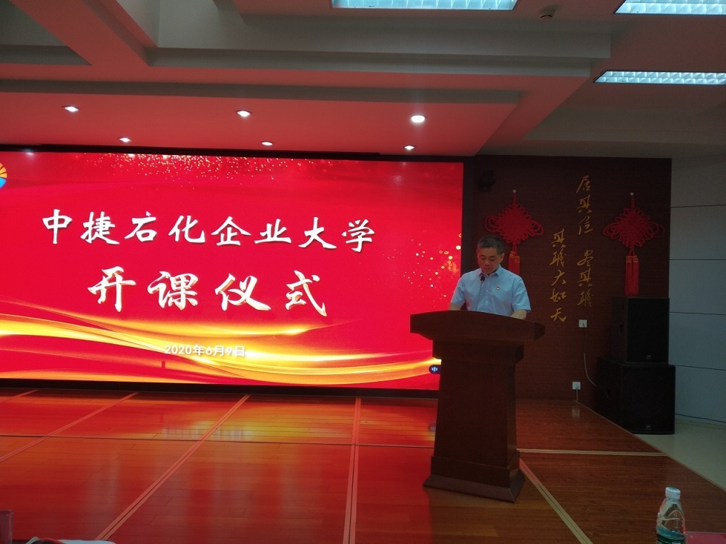 集團(tuán)總經(jīng)理喬樹華為中捷石化企業(yè)大學(xué)開課儀式作重要講話。喬總首先代表集團(tuán)公司全體人員向合作伙伴——格局商學(xué)院及諸位老師表示真摯的感謝,并預(yù)祝雙方的合作更加愉快,祝愿彼此在攜手共進(jìn)的道路上一起成長(zhǎng)。