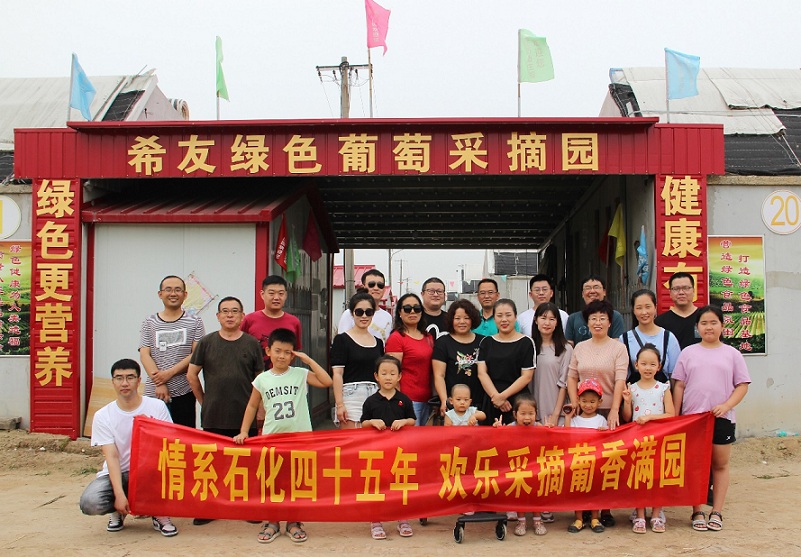 新欣園公司訊 7月18日,新欣園黨支部組織黨員干部及家屬來到周莊葡萄采摘園,開展了主題為“情系石化四十五年,歡樂采摘葡香滿園”的團(tuán)建活動(dòng),團(tuán)結(jié)各個(gè)“小家庭”,共建石化“大家庭”。