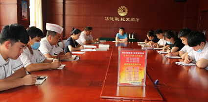 華悅凱旋酒店訊(通訊員 魏歆凝)7月27日上午,華悅凱旋大酒店主管以上管理人員對煙臺會議集團董事長重要講話《危機育新機 變局開新局》和總經(jīng)理工作報告《拼勇氣 搶財氣 闖志氣》進行學(xué)習(xí)貫徹。在學(xué)習(xí)中理解,在探討交流中提高,真正將學(xué)習(xí)會議精神落到實處。