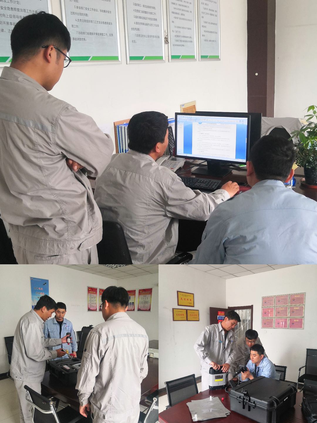 HSE工程師田永振解讀了公司下發(fā)的LDAR檢測(cè)管理制度,并對(duì)檢測(cè)儀器的配件組成、使用方法進(jìn)行了細(xì)致的講解。隨后帶領(lǐng)各裝置工程師到污水裝置進(jìn)行自檢教學(xué),首先將檢測(cè)儀器在可能泄漏的設(shè)備表面確定檢測(cè)點(diǎn)位,并將采樣探頭對(duì)準(zhǔn)檢測(cè)點(diǎn)位,將檢測(cè)儀置于度數(shù)最高值處并在儀器響應(yīng)時(shí)間內(nèi)至少讀數(shù)兩次,記錄最大值為此處檢測(cè)得到的泄漏值。此次檢測(cè)共查出6項(xiàng)泄漏點(diǎn),并記錄在LDAR自行檢測(cè)臺(tái)賬,其中5項(xiàng)均已整改完成,1處掛牌。隨后各裝置工程師按照公司及部門的要求對(duì)裝置區(qū)易泄漏區(qū)開(kāi)始進(jìn)行自檢,將泄漏檢測(cè)結(jié)果列入臺(tái)賬整理,周期為7天。