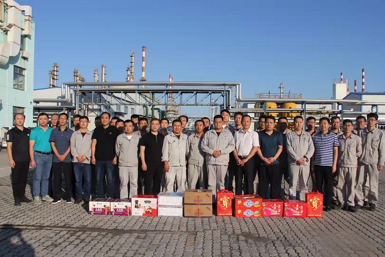 集團(tuán)公司訊 2021年9月21日下午,在中秋佳節(jié)到來(lái)之際,集團(tuán)黨委書(shū)記于國(guó)臣和總經(jīng)理喬樹(shù)華帶領(lǐng)領(lǐng)導(dǎo)班子一行深入新啟元、新欣園、華鑫洺源、華辰石油、華悅凱旋、華騰等下屬單位,為仍然奮戰(zhàn)在一線崗位上的伙伴們送慰問(wèn)、鼓干勁,送祝福、促生產(chǎn)。在濃濃的節(jié)日氛圍里,集團(tuán)領(lǐng)導(dǎo)班子向全體中捷石化家人的辛勤付出與奉獻(xiàn),致以由衷的敬意和感謝。