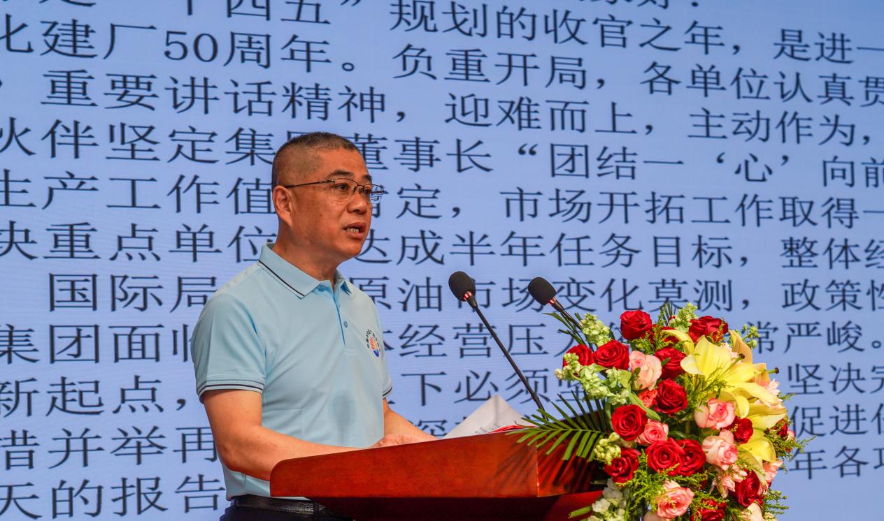 在熱烈的掌聲中,集團董事長王振華發(fā)表講話。董事長立足建廠五十周年的發(fā)展新起點,以《砥礪奮進五十載 繼往開來譜新篇》為題,深刻洞察時代變局,精準擘畫未來航程。他明確指出,面向未來,我們要“堅持創(chuàng)新驅(qū)動,打造核心競爭力;深化精益管理,提升運營效能;拓展市場空間,構(gòu)建發(fā)展新格局;堅持以人為本,共建幸福家園;踐行社會責任,彰顯企業(yè)擔當?!蓖瑫r,董事長以“篳路藍縷、櫛風沐雨、臥薪嘗膽、懸梁刺股”總結(jié)凝練了中捷石化五十年艱苦卓絕的奮斗歷程,并以此為精神內(nèi)核,提出了面向未來的發(fā)展要求。