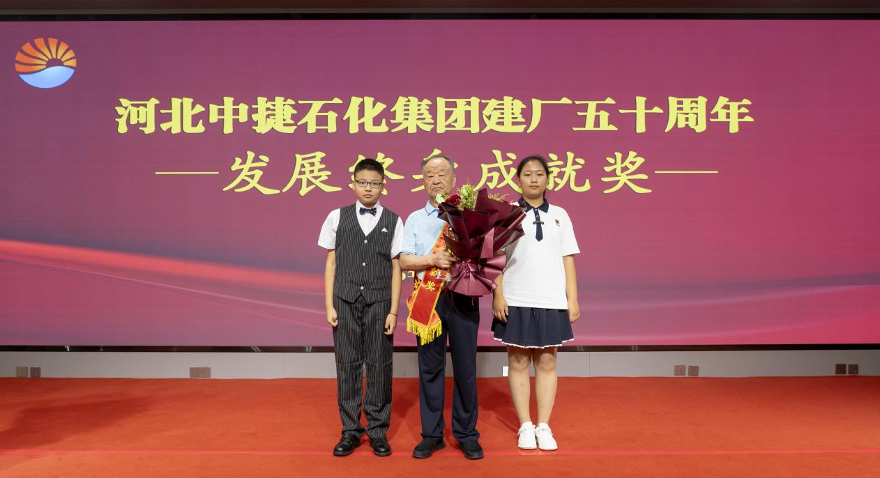 隨后,全體與會人員共同觀看宣傳片《王者之光振業(yè)華彩》,領略中捷石化集團董事長王振華先生作為開拓者與掌舵者的戰(zhàn)略遠見與輝煌成就。為致敬其數(shù)十年傾注心血智慧、引領集團劈波斬浪的杰出貢獻,大會特授予王振華先生“中捷石化發(fā)展終身成就獎”,兩名石化子弟代表登臺獻上崇高敬意,生動詮釋了中捷石化精神血脈的代代相承。