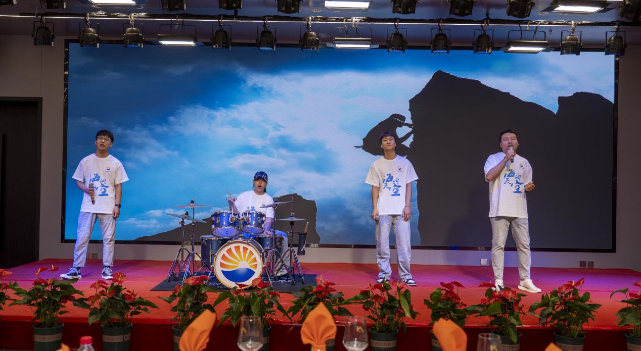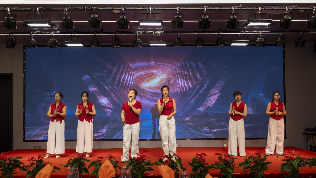 各單位選送的節(jié)目飽含深情與力量,為慶典增添了濃厚的喜慶氛圍。演出在《振聲華章——致敬中捷石化建廠50周年》的深情舞蹈中拉開帷幕,舞者用優(yōu)美的肢體語言詮釋了對企業(yè)的無限熱愛與崇高禮贊;詩朗誦《同一首歌》與架子鼓伴唱的《海闊天空》交相輝映,前者以激昂文字回溯創(chuàng)業(yè)艱辛,后者以澎湃旋律展望廣闊未來;《璀璨冒險人》《刀劍如夢》等節(jié)目,生動展現(xiàn)了中捷石化人勇于追夢、開拓進取的豪邁氣概;新啟元公司管理團隊合唱的《團結(jié)就是力量》鏗鏘有力,新欣園公司管理團隊演繹的《明天會更好》充滿希望,唱出了“志存高遠向深藍事不避難是勁帆”的勇者心聲,將現(xiàn)場氣氛推向高潮。