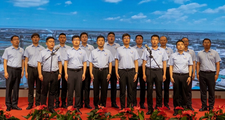 隨后,在溫馨而莊重的氛圍中,集團董事長王振華,黨委書記于國臣,總經(jīng)理喬樹華等集團公司領導,各所屬單位董事長、總經(jīng)理共同上臺,全場齊唱生日歌,為中捷石化50歲生日獻上最美好的祝福。