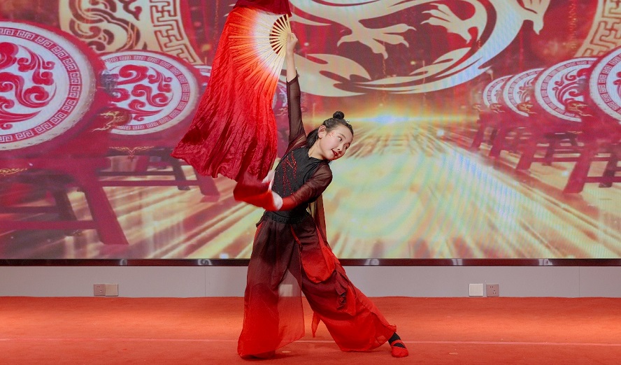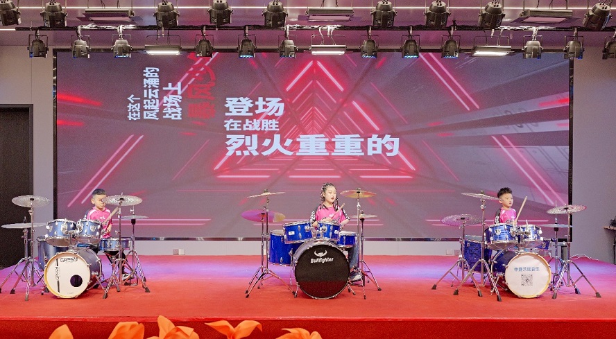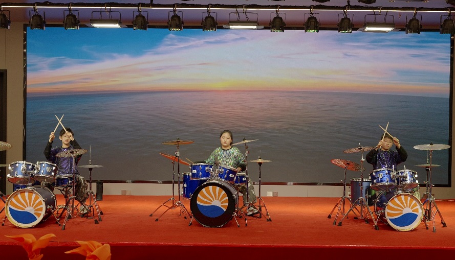 架子鼓《逆戰(zhàn)》:宋宗奕(新欣園公司宋立帥之子)、張芮萌(新啟元公司劉盈辛之女)、龔云哲(新欣園公司龔學佳之子)