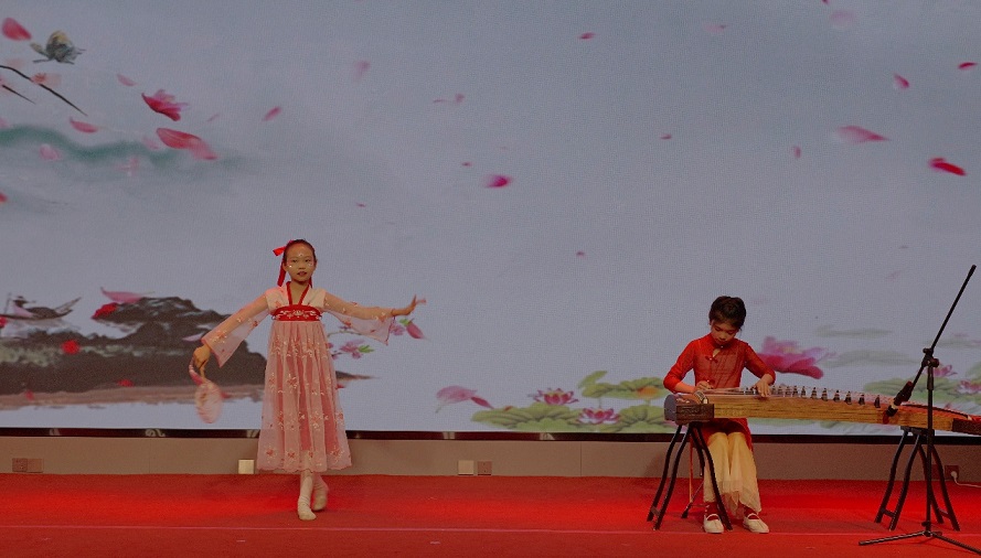 古箏舞蹈《桃花妝》:朱梓瑜(集團公司朱鑫林之女)、張芷暢(新啟元公司張悅之女)
