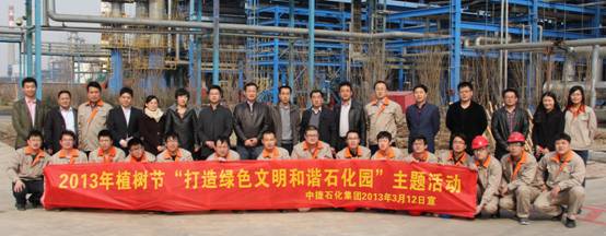 中捷石化集團(tuán)2013年植樹節(jié)“打造綠色文明和諧石化園”主題活動(dòng)于3月15日下午兩點(diǎn)半在新啟元廠區(qū)隆重舉行,集團(tuán)總經(jīng)理于國臣帶領(lǐng)集團(tuán)公司及各子公司領(lǐng)導(dǎo)班子共30余人參加了此次活動(dòng)。